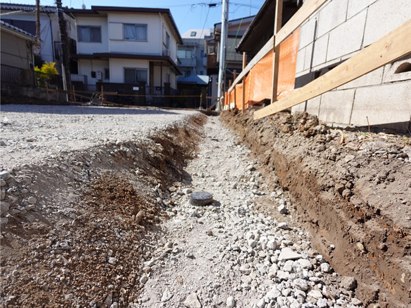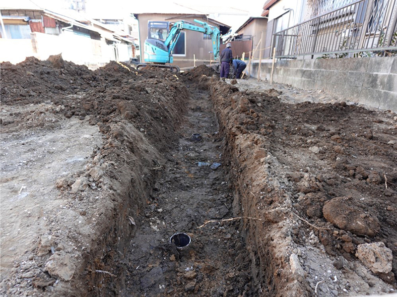 そして旧家屋の解体、その後戦後まもなく埋設されたような老朽管設備の整理も行い、